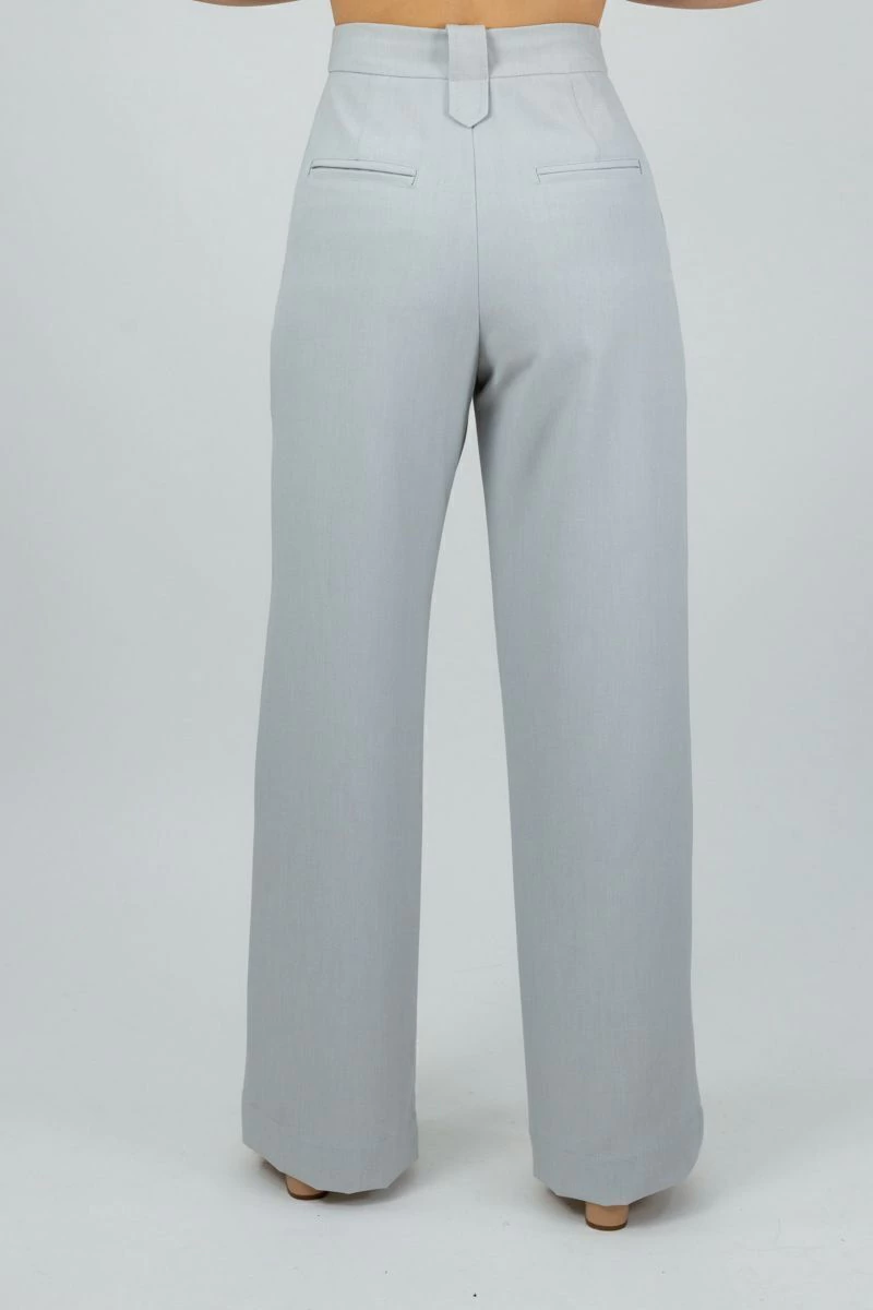 A calça ampla apresenta friso frontal, que alonga a silhueta, bolso faca lateral, bolso vivo traseiro e cós entretelado com passantes largos, proporcionando estrutura e versatilidade. O caimento fluido garante movimento elegante e impacto visual.